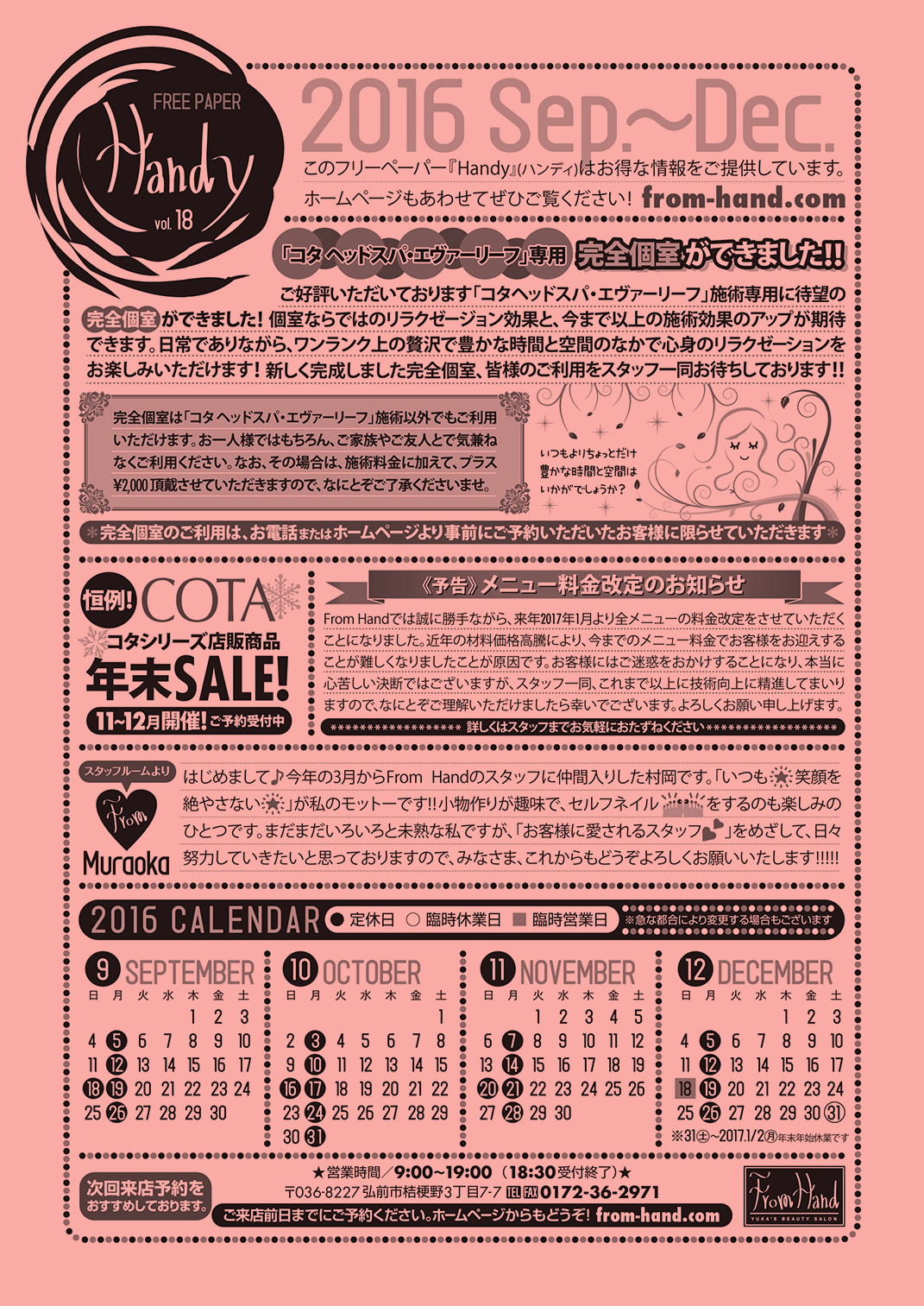お得な情報!お店スケジュールをコンパクトに発信!