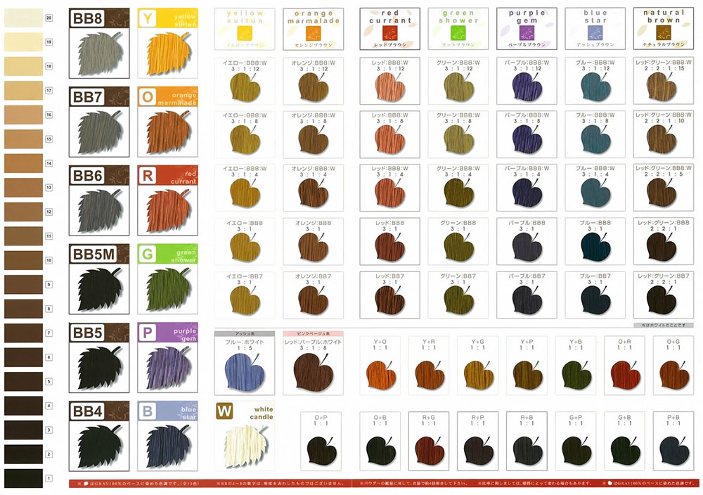 和漢彩染は、傷まない。臭わない。低刺激 お客様の3大お悩み(傷む・臭う・しみる)を可能な限り解消する目的で開発された染毛システムです。和漢彩染は、必要最小限な12種類のパウダーで、無限大のオリジナル色相(色調・色味)を実現しました。